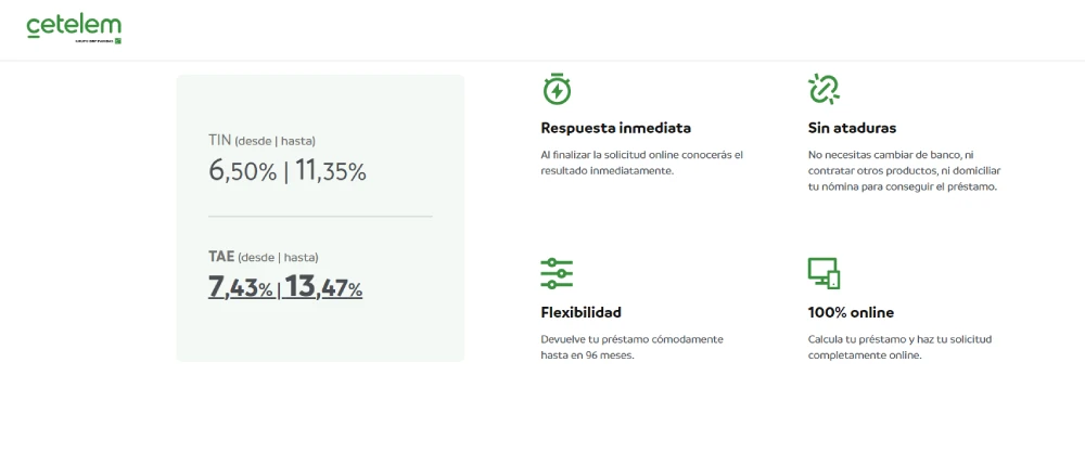 Características principales de los préstamos Cetelem
